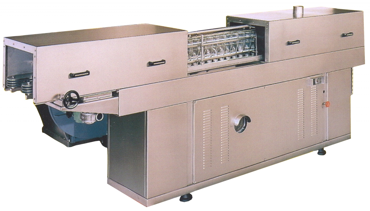 Designed to easily and efficiently solve the problems of inner cleaning and pre-heating of glass containers before filling. Equipped to handle one container size.
