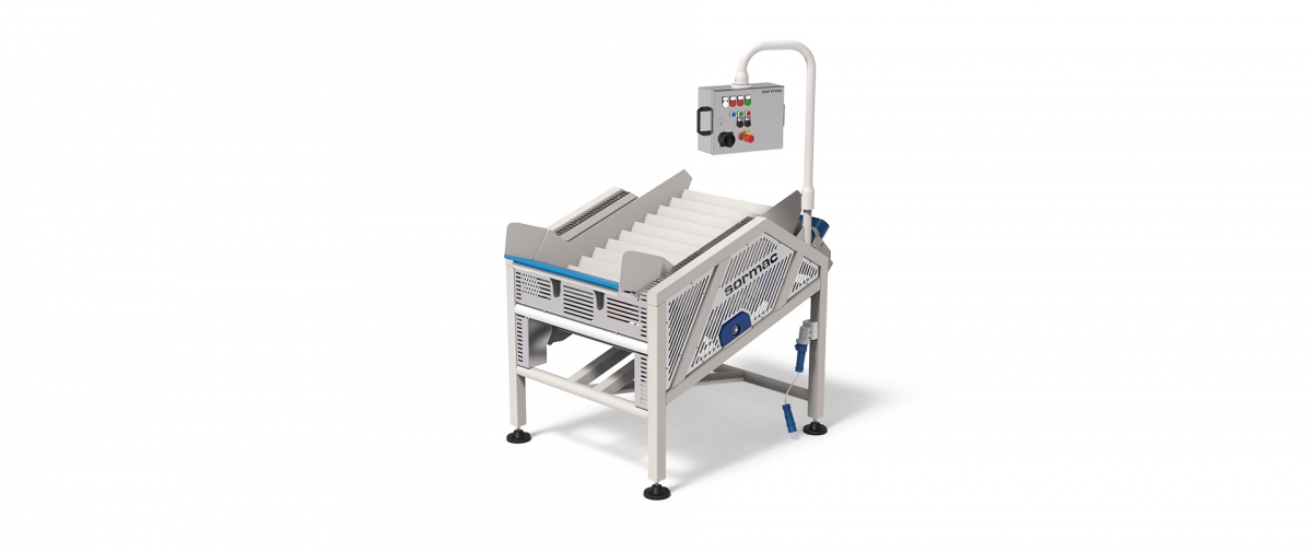 The Sormac automatic stepflow system type PVW meets the need to singulate carrots or other long-shaped vegetables like e.g. salad cucumbers, courgettes etc. so that the speed of both is synchronized. The Sormac knife peeler type KP-60/HS or the carrot topper / piece cutter type WOS-1A are ideal machines to place behind the stepflow system.
