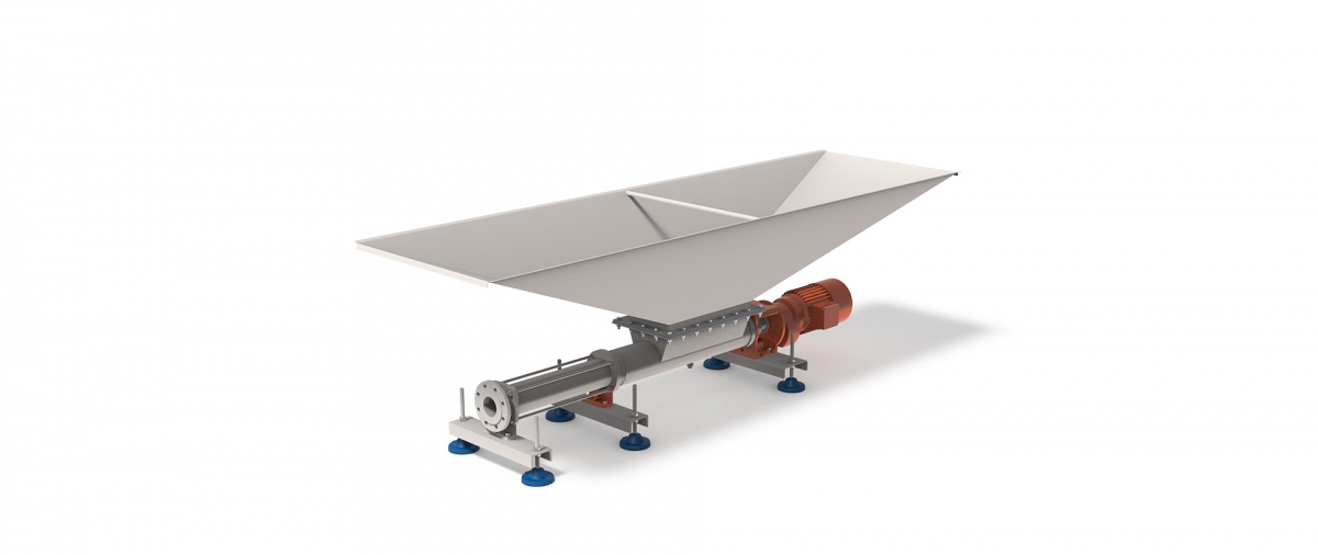 The Sormac excenter waste pump has the option of being combined with a collecting hopper and filling control switch. The pump is direct drive by a motor gearbox. Peeled process waste is directed into the fishtail shaped hopper or combined from additional process areas. This waste should be screened to less than 30 mm otherwise it is necessary to provide a macerator.