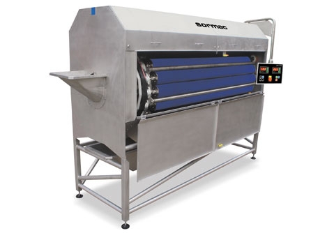 The Sormac rotary brush polisher type BRR consists of 16 brush rollers forming an elongated drum. The BRR is specially designed for washing/polishing of root vegetables.